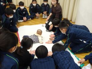 まずは、助産師の方から、いのちの始まりについてのお話を聞きました。いのちは奇跡的な確率で誕生するということを教えていただき、子供たちは自分が生まれたことのすごさや、いのちの尊さを感じていました。