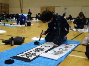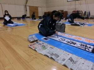 1月8日(木)に、3学期始業式と書初め大会を行いました。