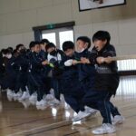 親子活動として、親子綱引きを行いました。各クラスで男女に分かれて総当たり戦で対決しました。気合いを入れるために円陣を組んだり、声をかけあったりして、ここでもフルパワーの姿が見られました。ご参加いただいた保護者の皆様、ありがとうございました。